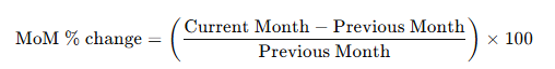 MoM growth formula: