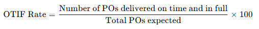 💡 Example: A vendor sends 1,000 units of shampoo but delivers it one day late and with only 950 units - both OT and IF are failed, impacting their OTIF score.