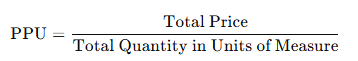 - A shampoo bottle, 500ml for $5 → PPU = $1.00 per 100ml