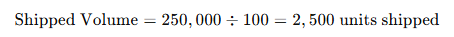 A home appliance vendor reports a Shipped Revenue of $250,000 and an ASP of $100 per unit.