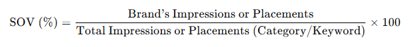 SOV quantifies how much of the customer’s attention and visibility space your brand occupies on Amazon.