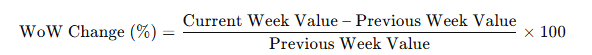 Example: If sales were $50,000 last week and $60,000 this week, the WoW growth = +20%. - WoW can be applied to: